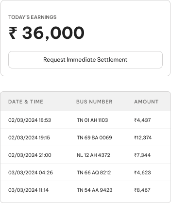 Easily monitor your daily earnings on the operator app. Bookings made before 6 PM are settled that day, with remaining bookings carried over to the following day's settlement.